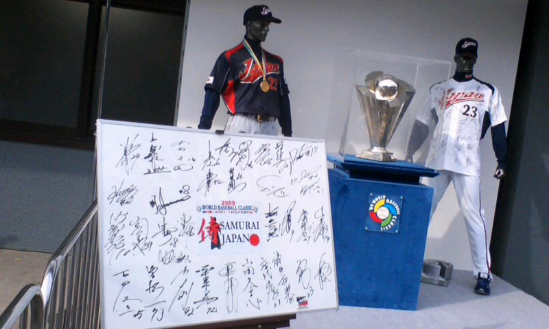 そんなわけで(どんなわけだ) ヤクルト4連勝!! やっぱり今年のヤクルトは一味違うんだぜ。 ところでWBCをサボったあの某竜の球団、何やってんの? ってかゴミから勝ち星あげてんの、 ヤクルトと広島しかいないじゃん。 ところで、この記事どう思う? 特に最後の文章。 巨人、中日と3強を形成してきた阪神も、今季は巨人戦未勝利で借金生活とだらしない。1強の巨人以外が互いにつぶし合う構図のセ・リーグに、巨人と渡り合える球団は見当たらない。 今後のセ・リーグを面白くするには、もはや“他力本願”。ダルビッシュ(日本ハム)、岩隈(楽天)、涌井(西武)ら絶対エースが腕をぶすパ・リーグ頼み。来月19日から始まるセ・パ交流戦を待つしかないか。 何を言っているのか 理解できないんだが。 セには巨塵と渡り合える球団が見当たらない? 広島は今シーズン巨塵に負けなしだし、 ヤクルトはまだ巨塵と1ゲーム差。 3強? いつの時代の話だ? 今年、流れは確実に変わるぞ。 都合よくヤクルトは明日からゴミ売戦。 くたばれ読売。 でまぁそんな感じに盛り上がってるヤクルト4連勝の3戦目、 おとといの試合に行ってきました。 相手は巨塵に負けなしの広島、不足はないです。 けれど個人的に試合はおまけ。 本題はコレ↓ WBC優勝トロフィー。 この前の3連戦だけ神宮にやってきたんです。 「これは見に行かねば」と思い、気づけば神宮に。 3年前にも神宮へ見に行ったハズなのですが、 V2という重みがあるぶん、前より大きく見えましたね。 でもって試合は…。 とその前に、最近やたらと野球行きたい衝動に駆らせてくれたアノ元先生へ、 「試合行ってくる」という内容のメールを。 少し経った後、返信。 内容は「なら私も行きます」的な。 ってゥォオイッ!! 次回に続かせます。 ネタがないの。 ではでは。 PR