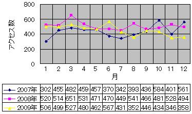 ブログに私用は持ち込まない主義なんだ。 日記なのに私用は持ち込まない主義なんだ。 …よしッ。 そんなわけで無事、 2年目に突入しました(ぅおい どうも、D-BOSです。 1年前の決意はどこに行ったんだかね。 きっと校内なのに隠そうとしてたのがアホだったんだと思います。 さて、前記事のラストでも触れたように 今回は『アク解(ry』SPです。 なのでさっきまで『集計楽しいハァハァ』 といった変態チックなテンションでした。 『アク解で(ry』とは、アクセス解析を使って このブログ前月の「アクセス数」「リンク元トップ3」を発表するコーナーです。が、 今回はSPなので2009年の「年間アクセス数」「年間リンク元トップ5」 そして「年間検索ワードトップ5」をお送りしたいと思います。 まずはアクセス数から。 2009年度 アクセス数 5408Hits!!(前年比:-708) 上半期:3041Hits(前年比:-116) 下半期:2367Hits(前年比:-592) 月別アクセス数トップ 6月(567Hits) 日別アクセス数トップ 03月05日(47Hits) やっぱり4桁って気持ち良いですね。 と言っても上半期・下半期・年間とすべてマイナス。 特に下半期は月別集計を始めた2007年以来最悪の値です。 まぁ無休だったトコから1ヶ月休んでるわけだから 当然っちゃ当然なんですけどね。 でまぁ去年掲げた目標にまたしても届かなかったというわけで。 今年も、今年こそ、現状維持を目標にしたいと思います。 ついでにグラフとかどぞ。 去年のにちょびっと足しただけというテキトーさ。 次はもちろんアノ人の独壇場、年間リンク元ランキンですっ。 2009年度 リンク元ランキングトップ5 第1位 上半期(1) 下半期(2) →『年中無休で開店休業(1)』 第2位 上半期(―) 下半期(1) ↑『年中無休でタイトル募集(―)』 第3位 上半期(2) 下半期(3) ↑『夢色(―)』 第4位 上半期(3) 下半期(6) ↑『風の吹くまま、涙流れるままに…(7)』 第5位 上半期(5) 下半期(4) ↑『サイト内リンク(6)』 だんち。 もうワンツーは仕方ないですね。 開設期間に比例して開店休業が上になりました。 でもって集計してて楽しかったのは4位以降。 年間6位は上半期(6)の下半期(5) 年間7位は上半期(3)の下半期(8) という誰が来てもおかしくないほどの僅差。 あぁ…、メッチャ楽しい…。 最後は半年に一度の検索ワードランキン。 2009年度 検索ワードトップ5 第1位 上半期(1) 下半期(3) →『くもがくれのしゅらば』 第2位 上半期(2) 下半期(6) ↑『自分と野球とブラックと。』 第3位 上半期(11) 下半期(1) ↑『魔将ガイエル』 第4位 上半期(3) 下半期(―) ↑『きよの』 第5位 上半期(4) 下半期(10) ↓『くたばれ読売』 ※内容の似かよったものは統一して集計しています。 殿堂入り。 それでも首位を守り続ける。カッコイイ。 正直、下半期は「ガイエル」をはじめ野球関連の言葉ばかりで、 年間トップしんどいんじゃないかな、と思ってましたけど…。 こりゃやっぱり粗品あげなきゃね。 しかし「くたばれ読売」もよく入ったねぇ。 古きよき時代の「ガチ姉」みたいなものを感じます。 ちなみに、下半期2位は「のど飴」です。年間だと7位です。惜しいっ。 ついでに言うと、前年度順位が書いてないのは 6位以下のデータがどっか行ったからです。 いきなり宣言どおりのグダグダだぜっ。はぁ…。 じゃぁ、まぁ、そんなわけで、 今年もたくさんのアクセス、 お待ちしております。 すぺしゃる(ry PR